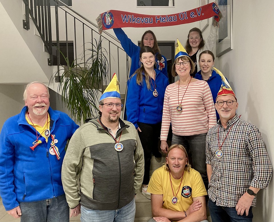 "WiKaVau Helau 2001 e.V. " - ausgedacht von Franz Brumberg - wurde dann mit der Stimmenmehrheit in der Gründungsversammlung angenommen. Es ist die Abkürzung von Wi(ckeder) Ka(rnevals) Vau(=Verein) und reimt sich auch gleich auf den Jeckenruf "Helau".